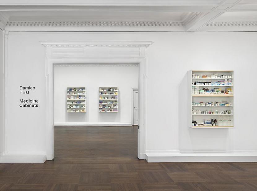 Дэмиан Херст, знаменитый своими работами с фауной, начал строить аптеки в пространствах галерей. Первые аптечные шкафчики, Medicine Cabinets, он создал еще будучи студентом, в 1988 году. Он говорил о них: "I can’t understand why most people believe in medicine and don’t believe in art, without questioning either." Хёрст исследует смерть, а лекарства и медицина вообще — часть пути к ней, дающая надежду от нее увернуться, как правило, несбыточную. Херст очарован лекарствами.
